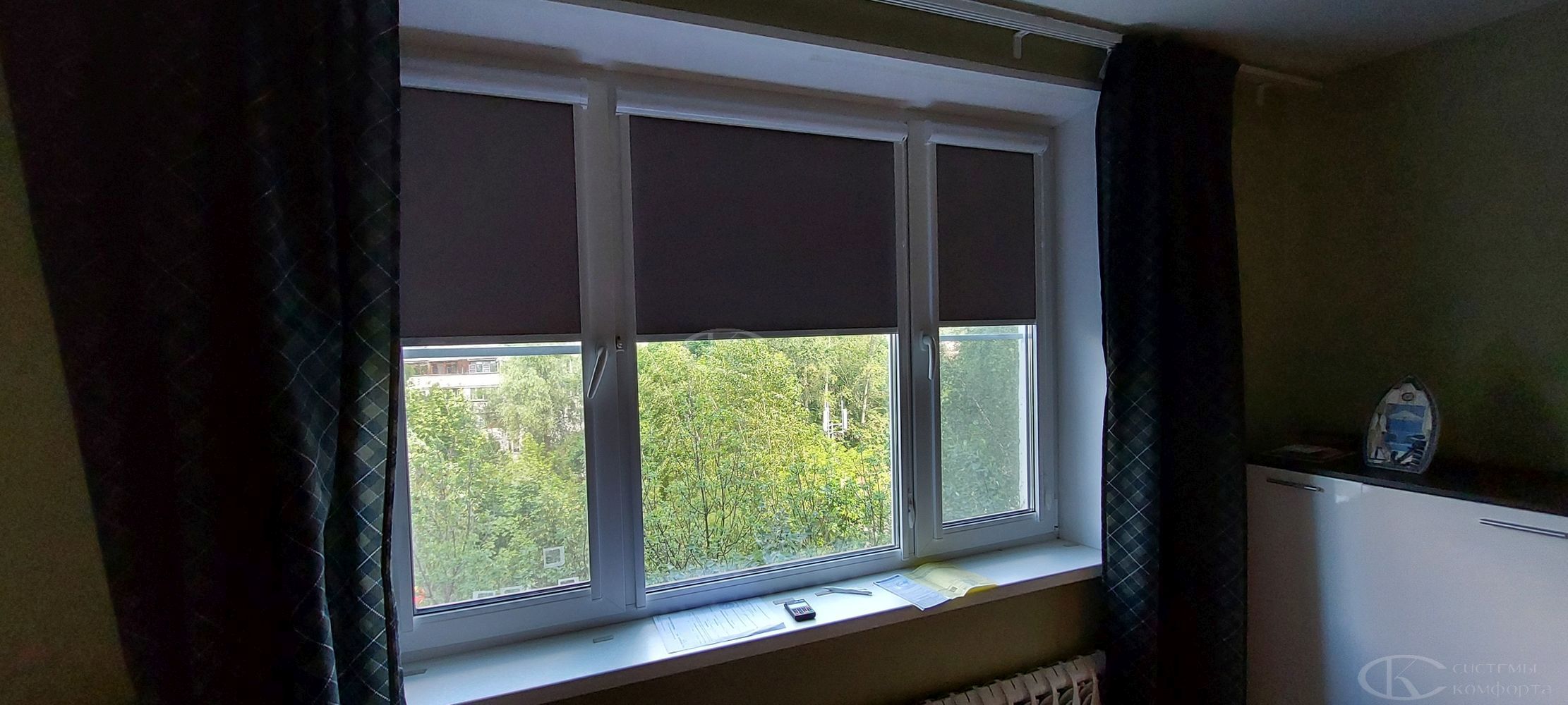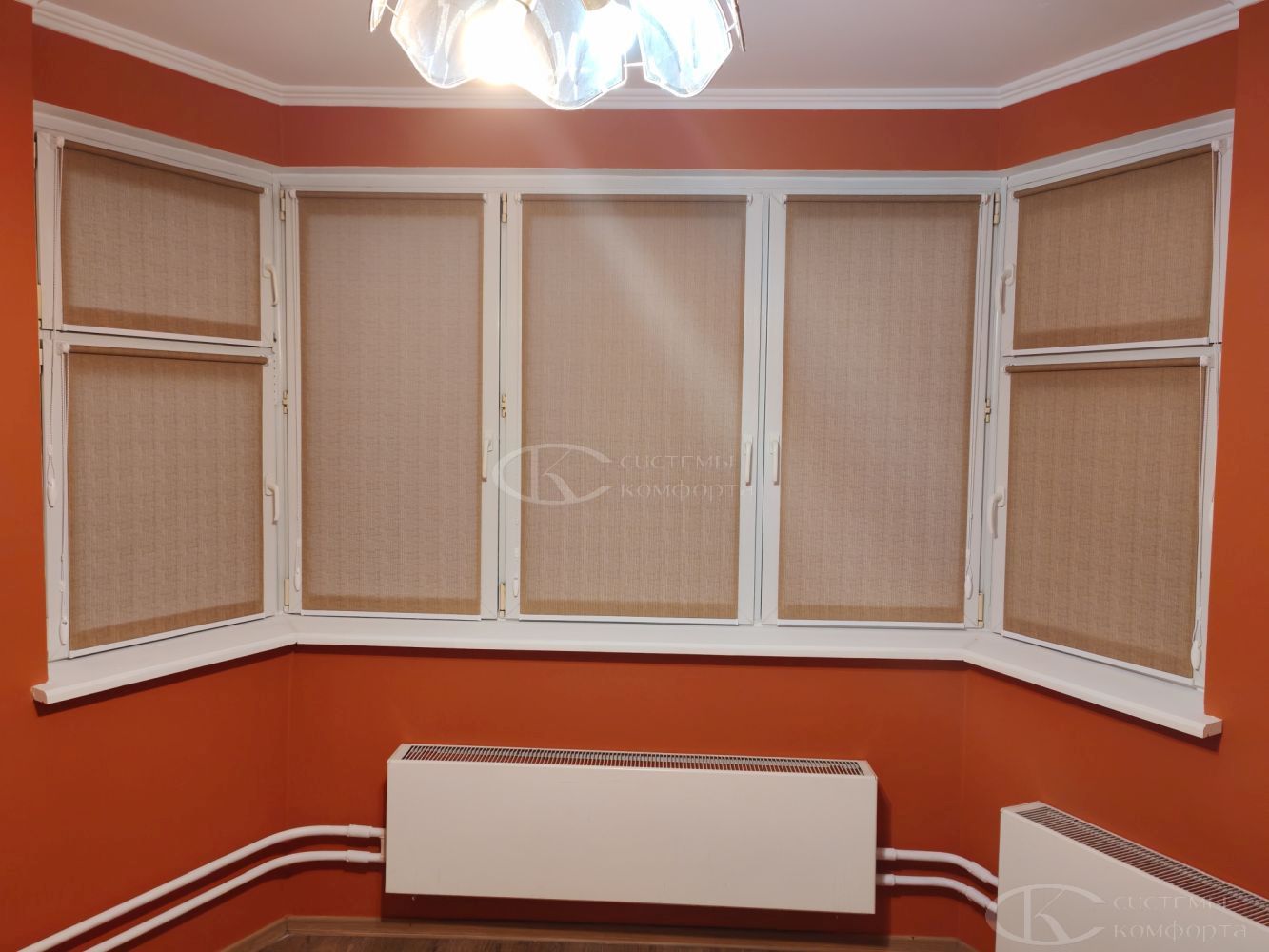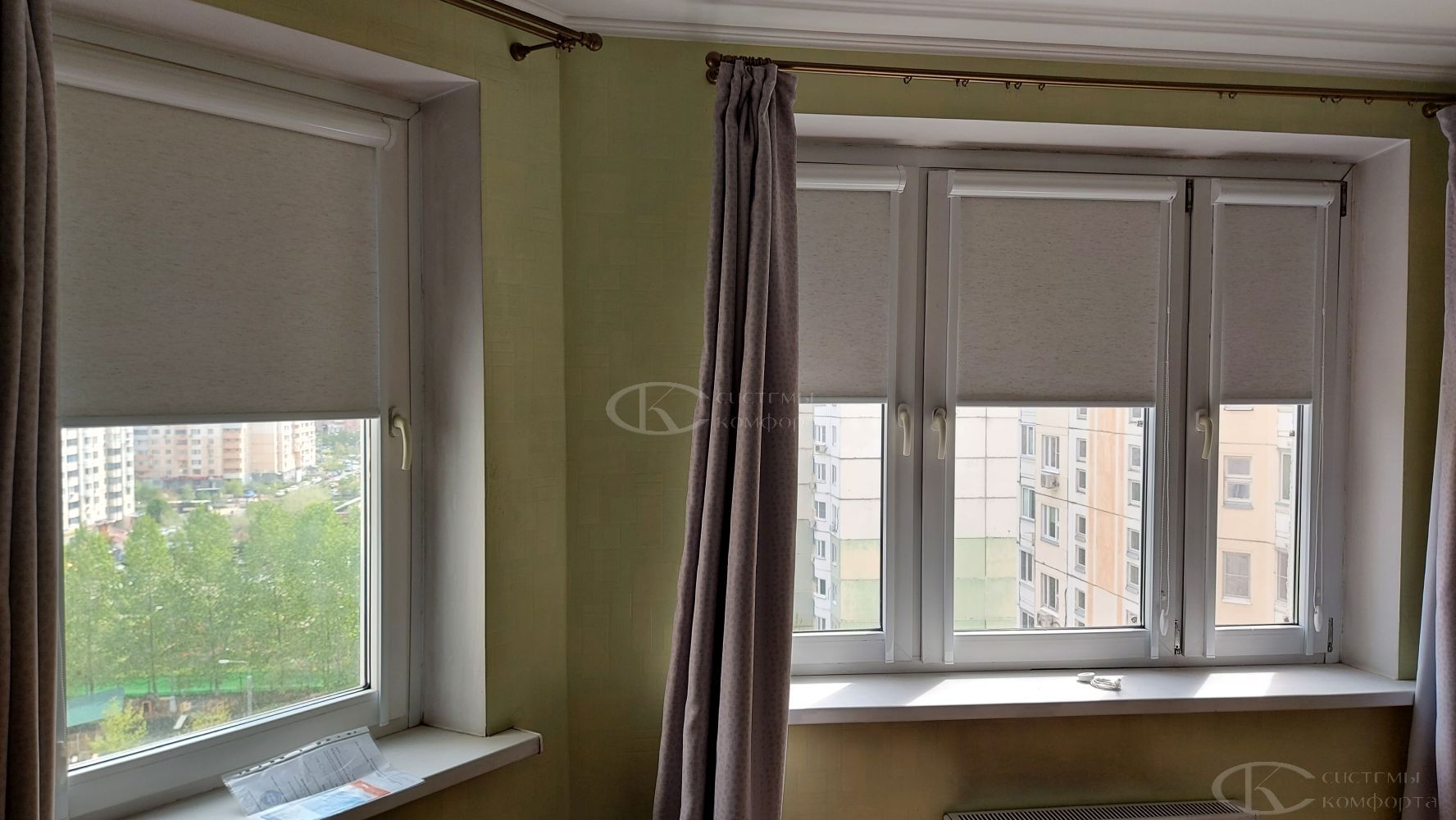 - Рулонные шторы: отлично сочетаются с классическими тканевыми шторами, просты в установке и обслуживании; крепление подходит под любой тип окон.