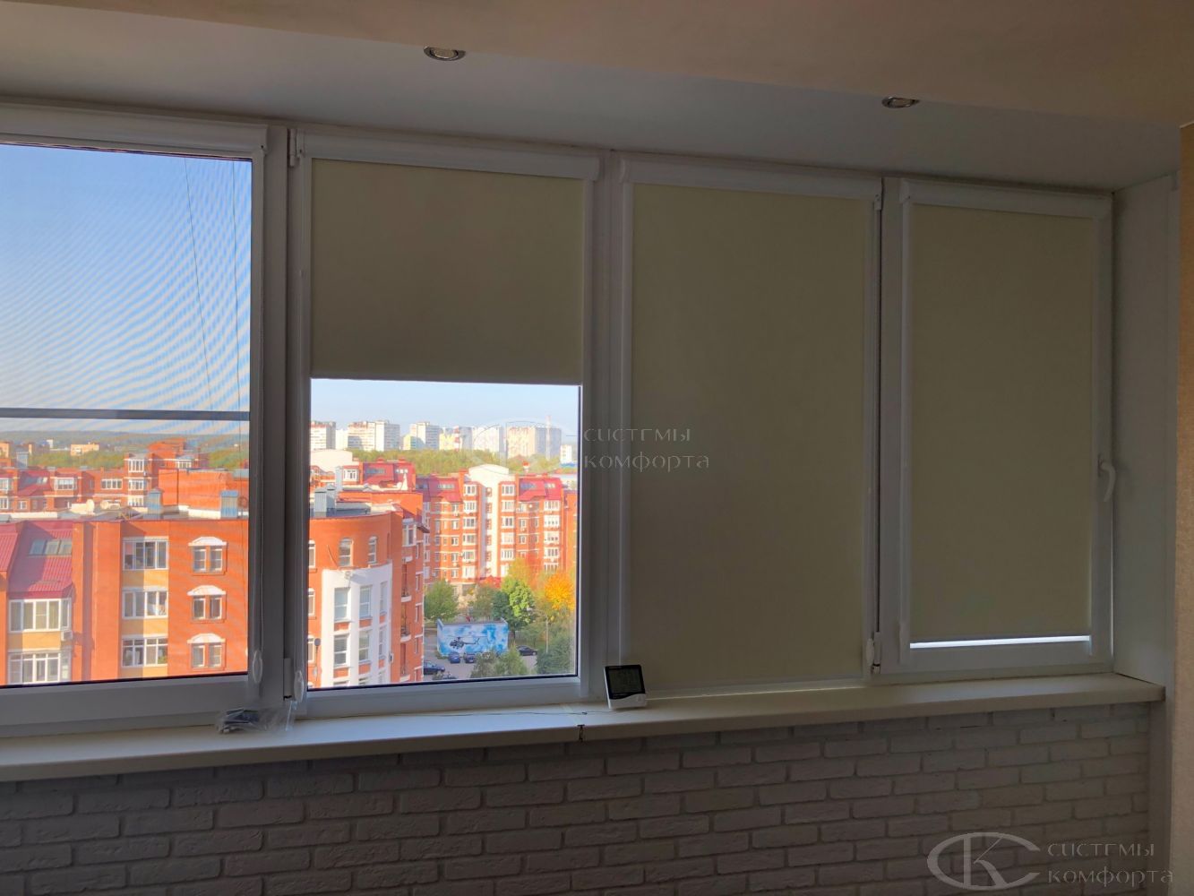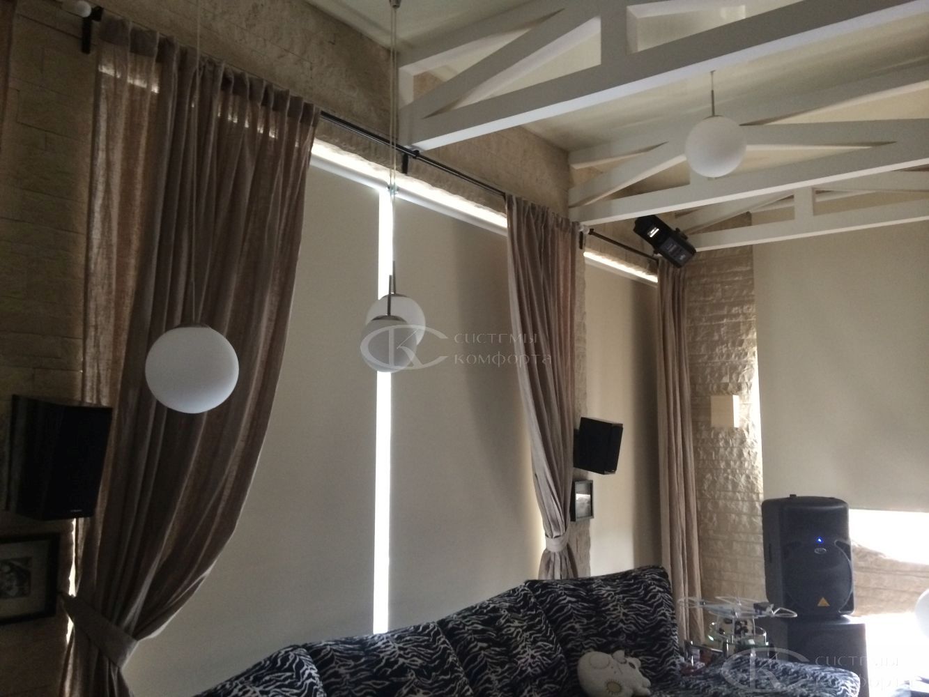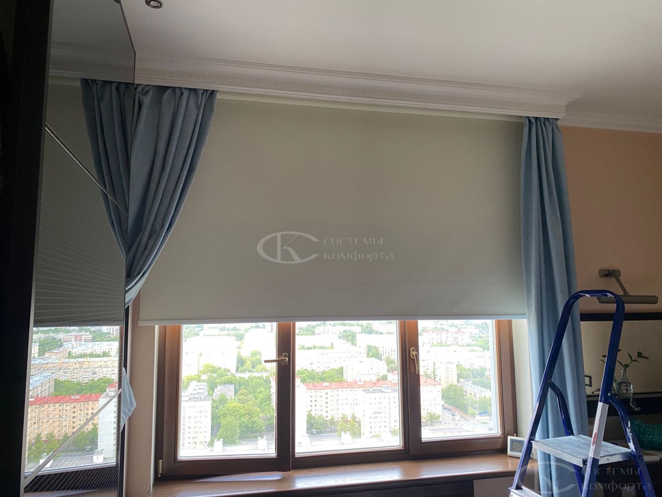 - Рулонные шторы: отлично сочетаются с классическими тканевыми шторами, просты в установке и обслуживании; крепление подходит под любой тип окон.