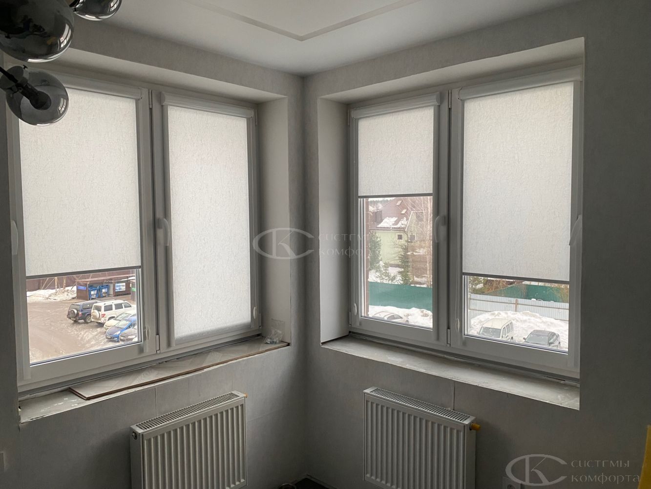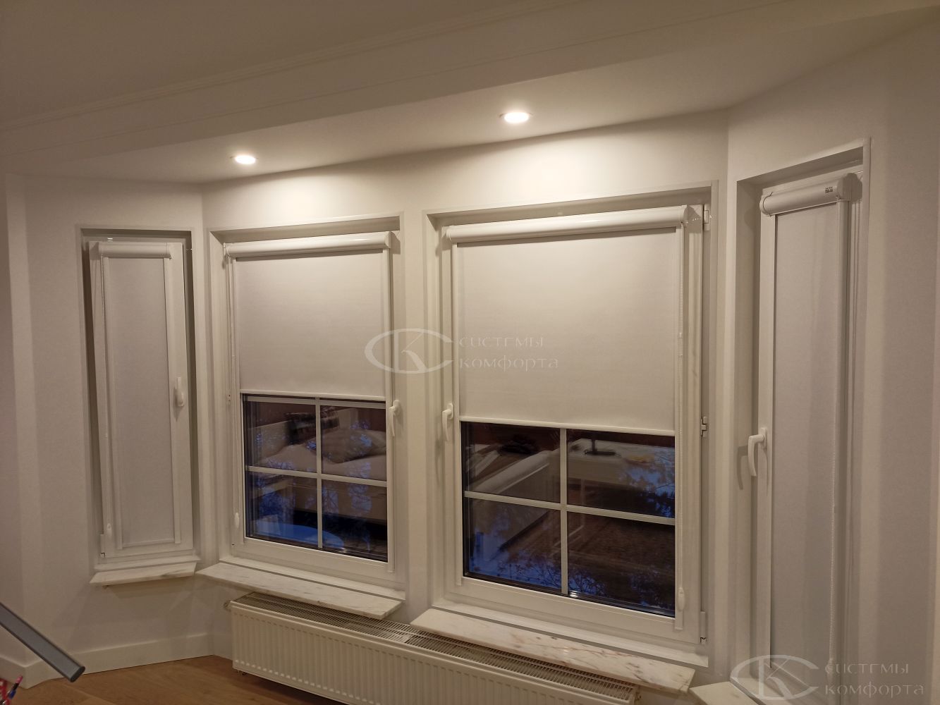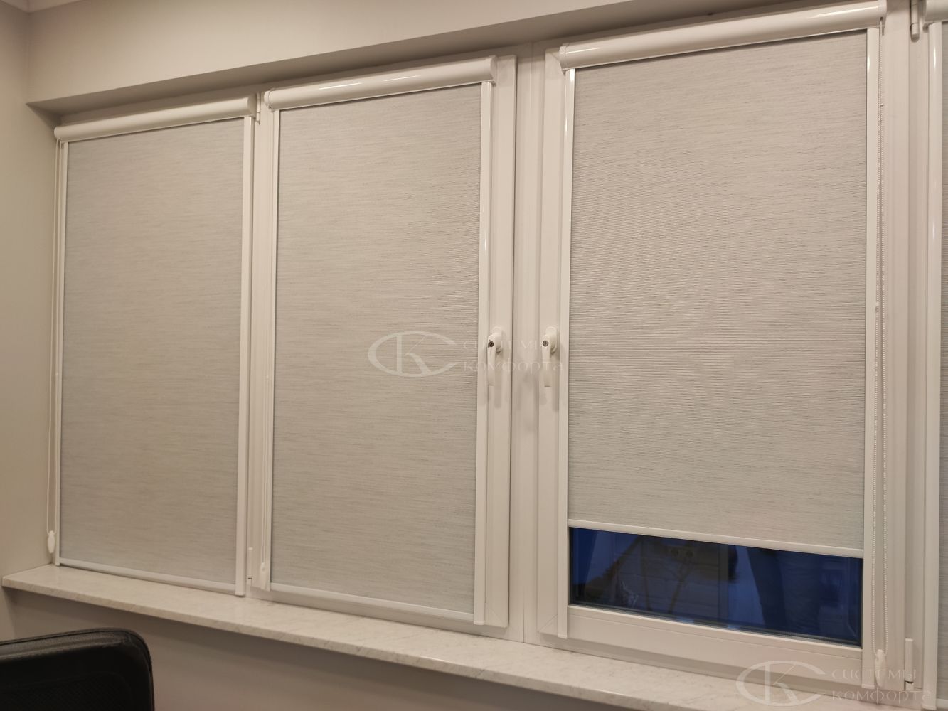 - Кассетные шторы: позволяют гармонично оформить окно и максимально убрать просветы.