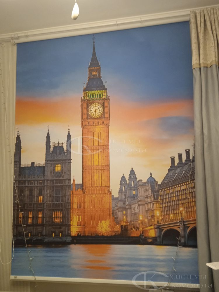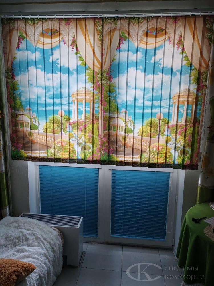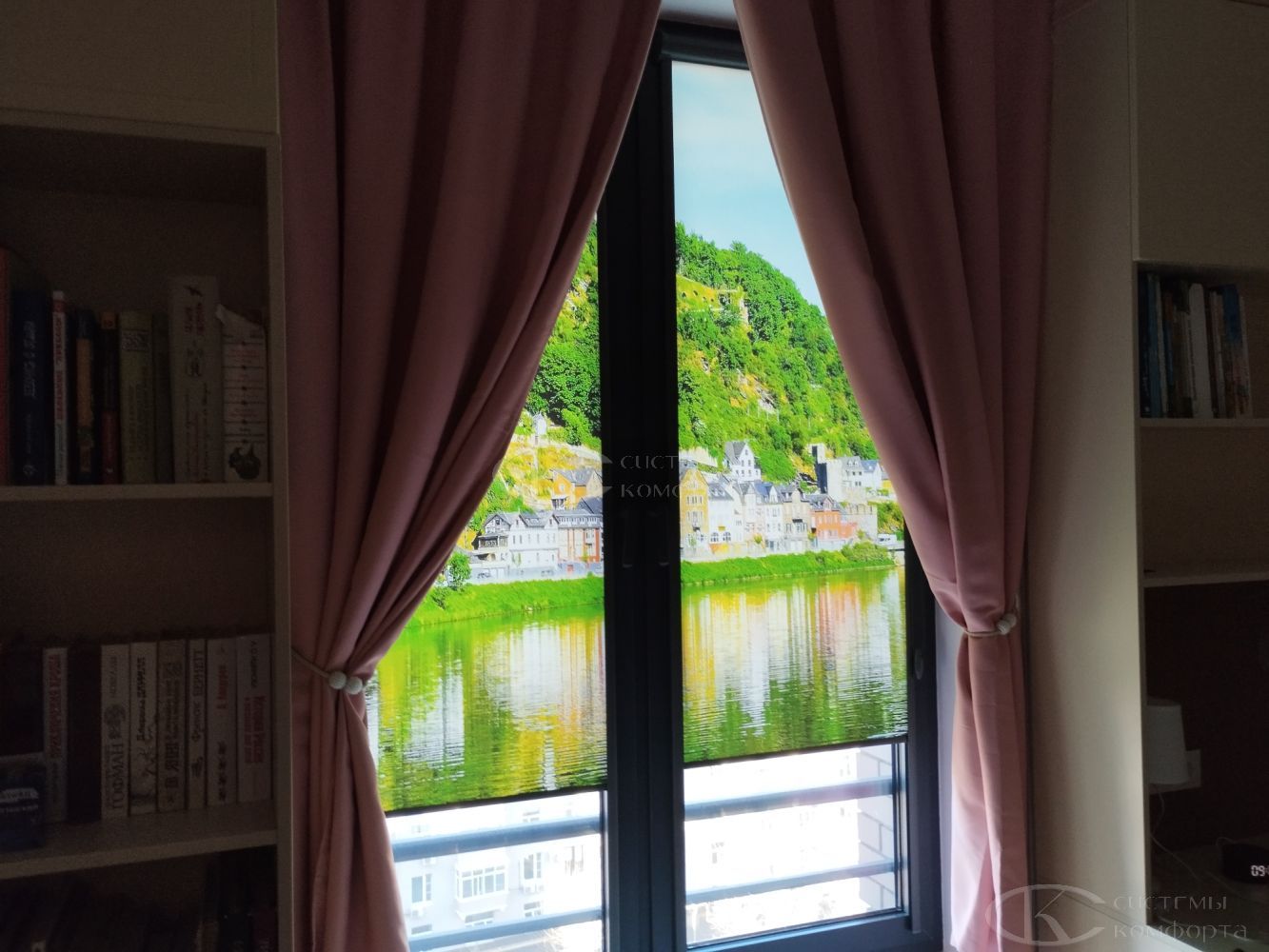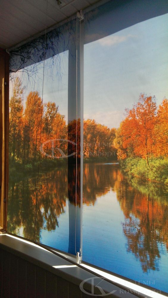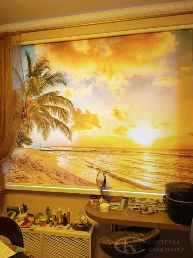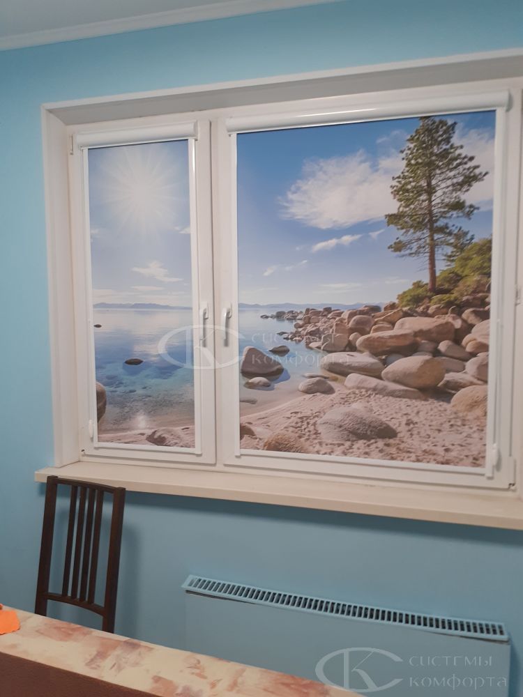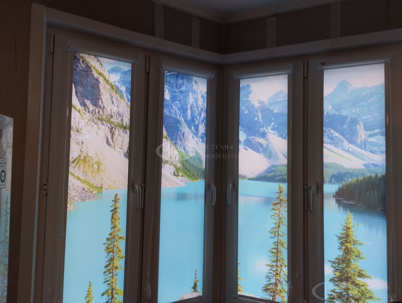 - Жалюзи с фотопечатью: рулонные шторы с нанесенным рисунком сделают интерьер уникальным.