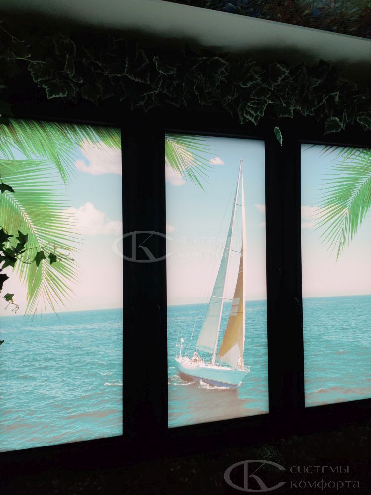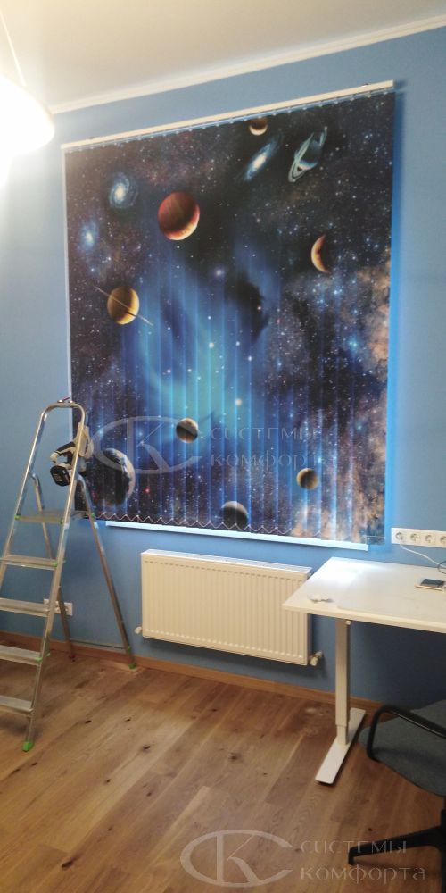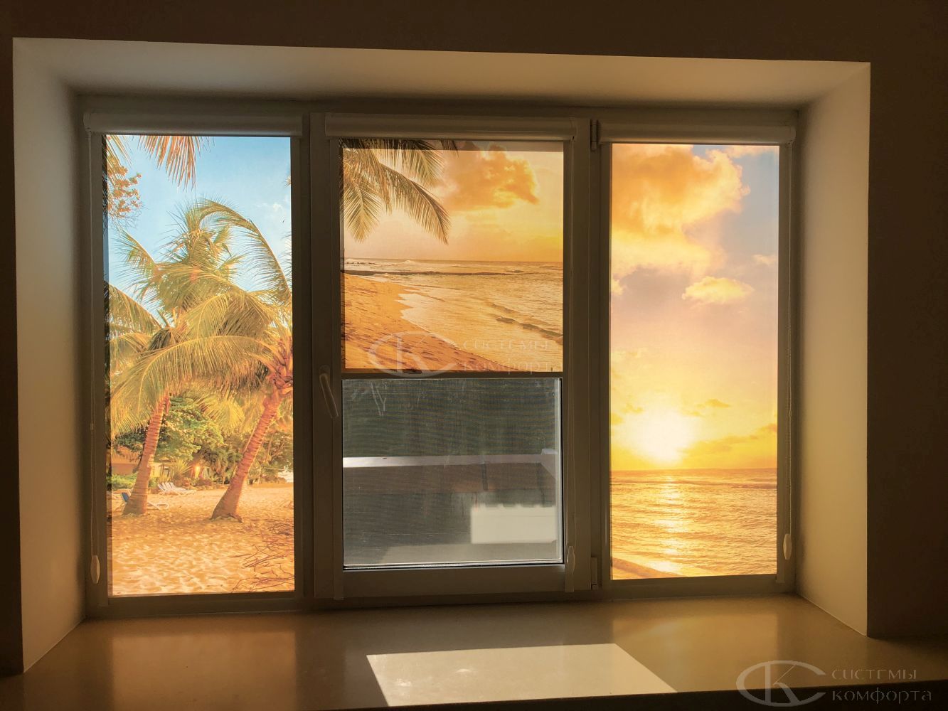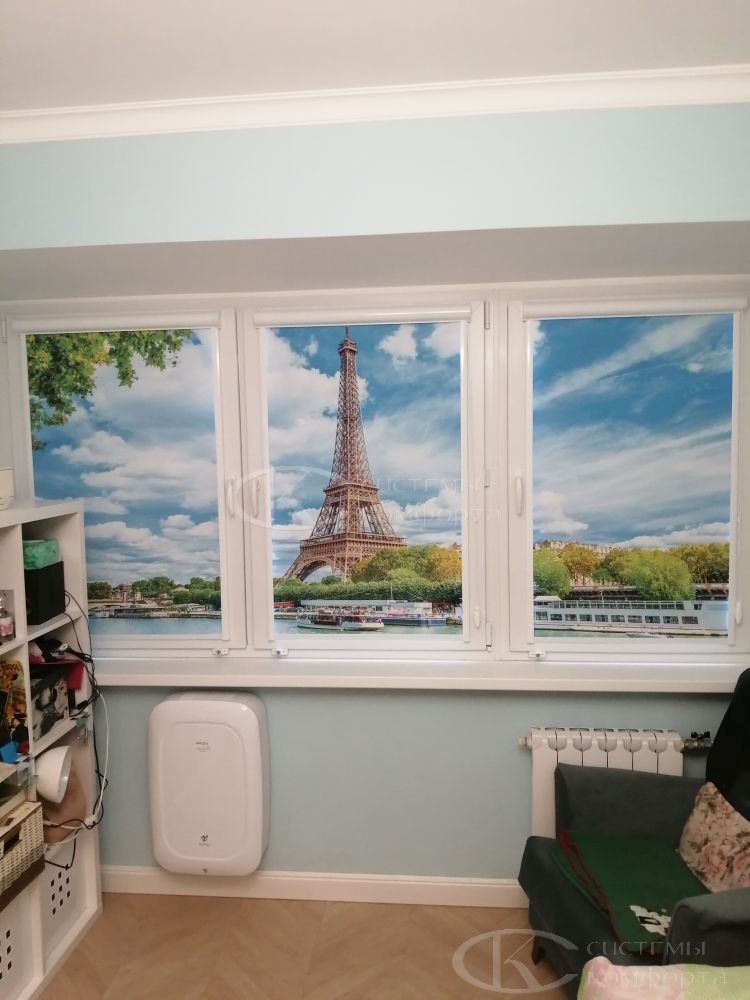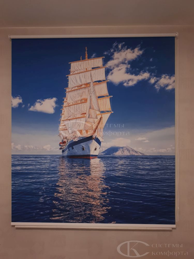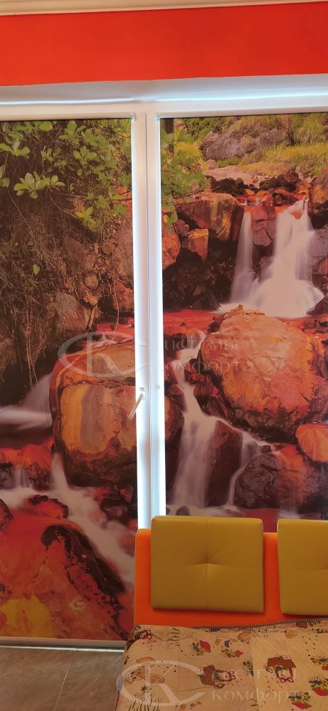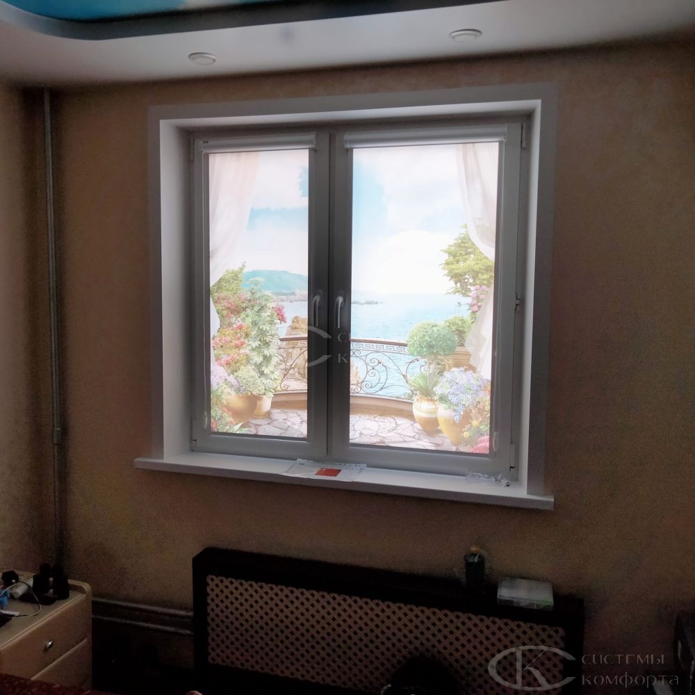 - Жалюзи с фотопечатью: рулонные шторы с нанесенным рисунком сделают интерьер уникальным.