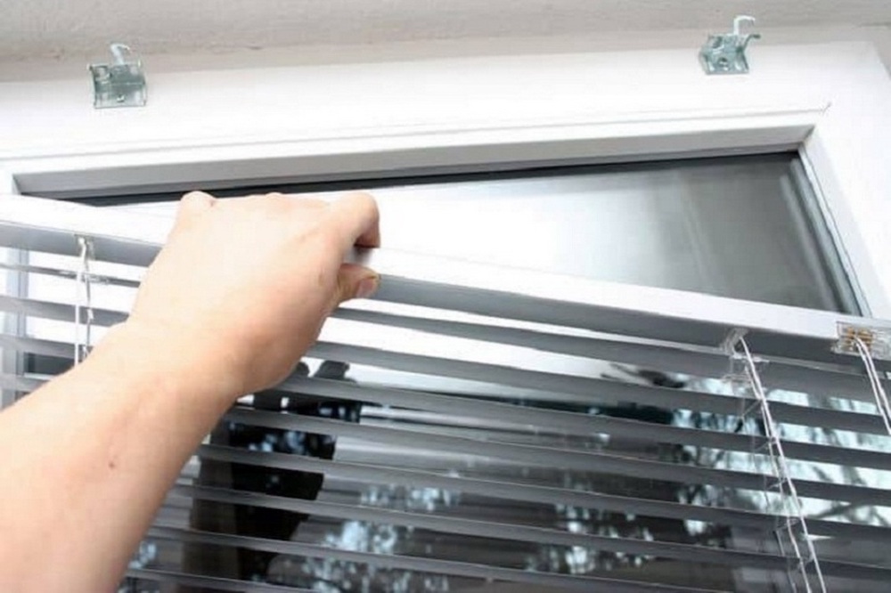 После определения типа крепежа можно приступить к извлечению пластин. Сначала нужно снять декоративные крышки с крепежей, а затем убрать кронштейны, фиксирующие штору к поверхности. На следующем этапе необходимо приподнять верхние пластины и освободить фиксаторы. Осторожно оттягивая их на себя, поворачиваем вправо, одновременно подтягивая ламели вниз и слегка нажимая на них. Освобождаем таким способом все пластины и фиксируем кронштейны на место. Во время снятия жалюзи нужно стараться не допускать спутывания планок, так как это может привести к порче изделия.