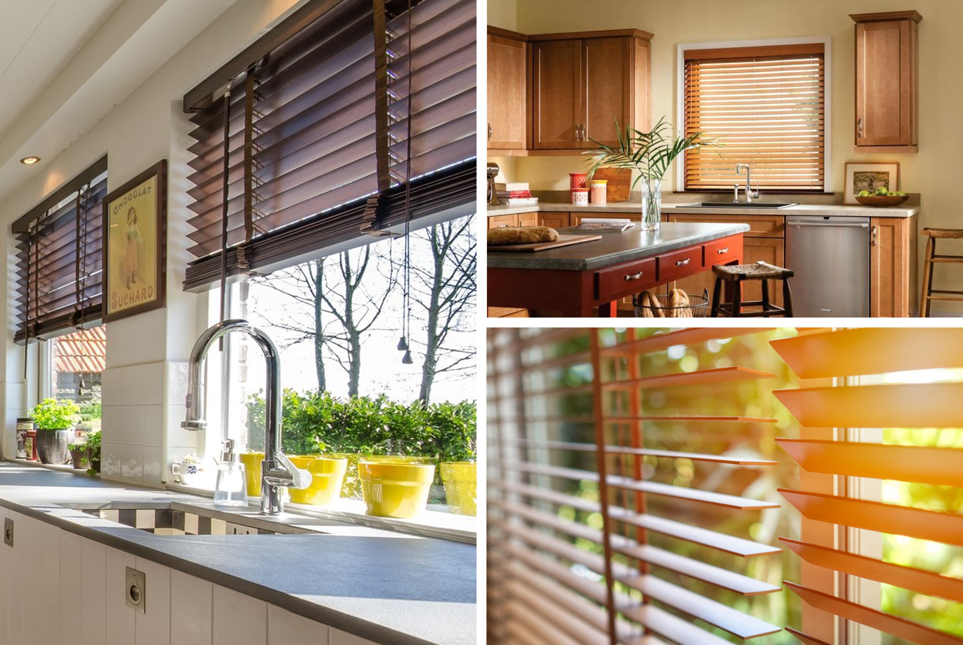 Также стоит учитывать место установки жалюзи. Если рядом с окном расположена плита, мойка или кухонный стол, на жалюзи будут попадать брызги, пар, вода, копоть. Модели из пластика и алюминия легко очистить, они не впитывают жир и запахи. Пластиковые варианты отличаются лёгким весом и ценовой доступностью. Но быстро выцветают при интенсивном ультрафиолетовом облучении. Металлические модели не пропускают свет, легко моются и полируются, устойчивы к жидкости. Изделия сокращают теплопотери в холодное время года, а летом сохраняют прохладу внутри. Однако алюминиевые ламели могут шуметь и запутываться при открытых окнах и сильном ветре. Тканевые жалюзи обрабатываются антистатическими и влагоотталкивающими пропитками. Деревянные и бамбуковые жалюзи «Системы комфорта» от производителя экологически безопасны, делают интерьер уютнее и гармоничнее.