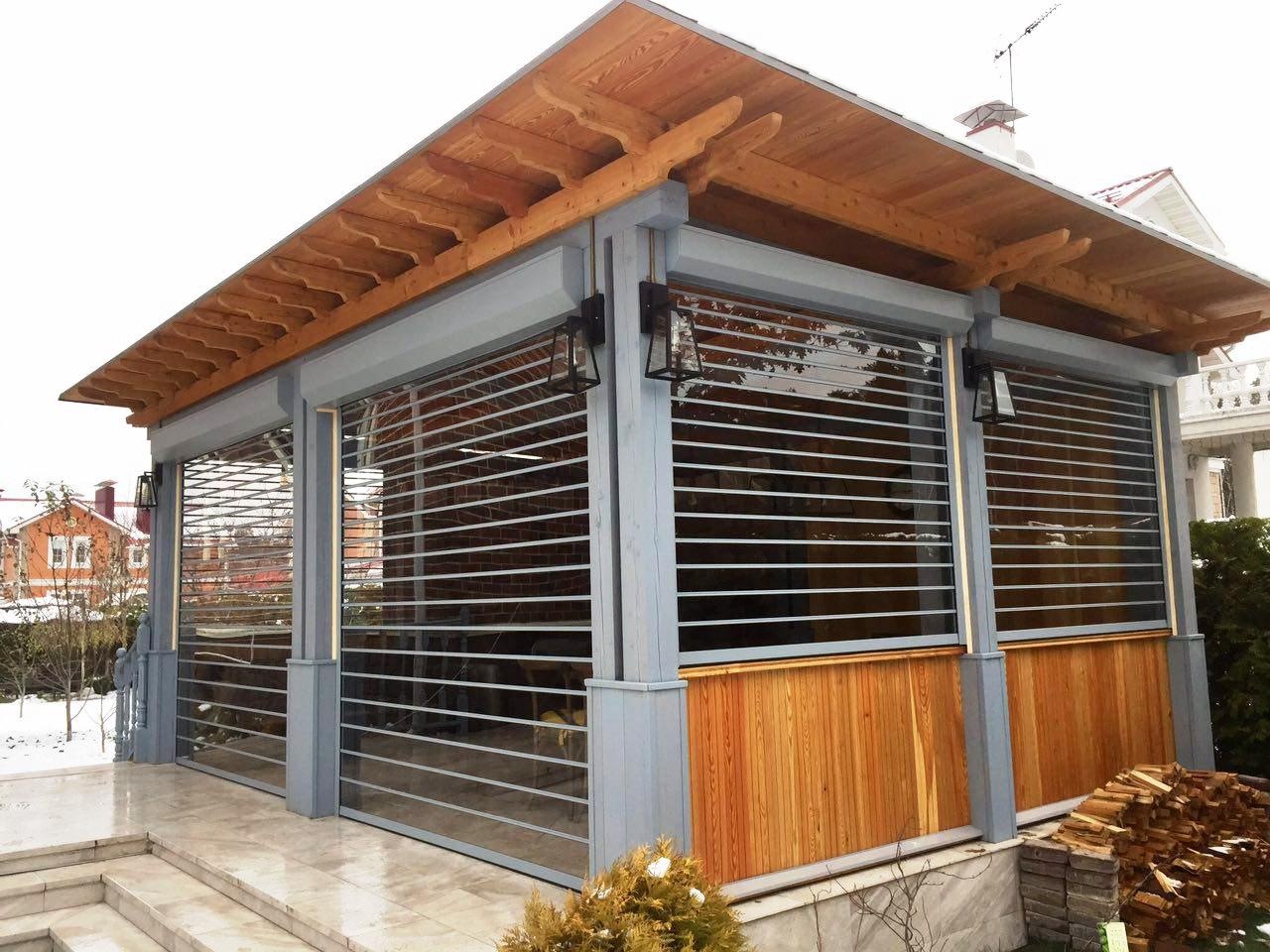 Беседки, а также террасы и веранды загородного дома в теплое время года становятся отличным местом для отдыха всей семьей и компанией. Здесь можно обедать, ужинать на свежем воздухе, общаться, играть в настольные игры, спасаясь от летнего зноя. Нередко в беседках устанавливают рольставни для решения нескольких задач.