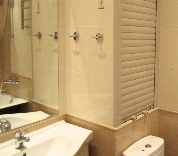 - В отличие от коробов и фальш-стен с небольшими лючками, роллеты открывают доступ ко всему трубопроводу. В случае аварии жалюзи поднимаются одним движением, протечка быстро обнаруживается и устраняется (дополнительно полотно можно оснастить электроприводом).