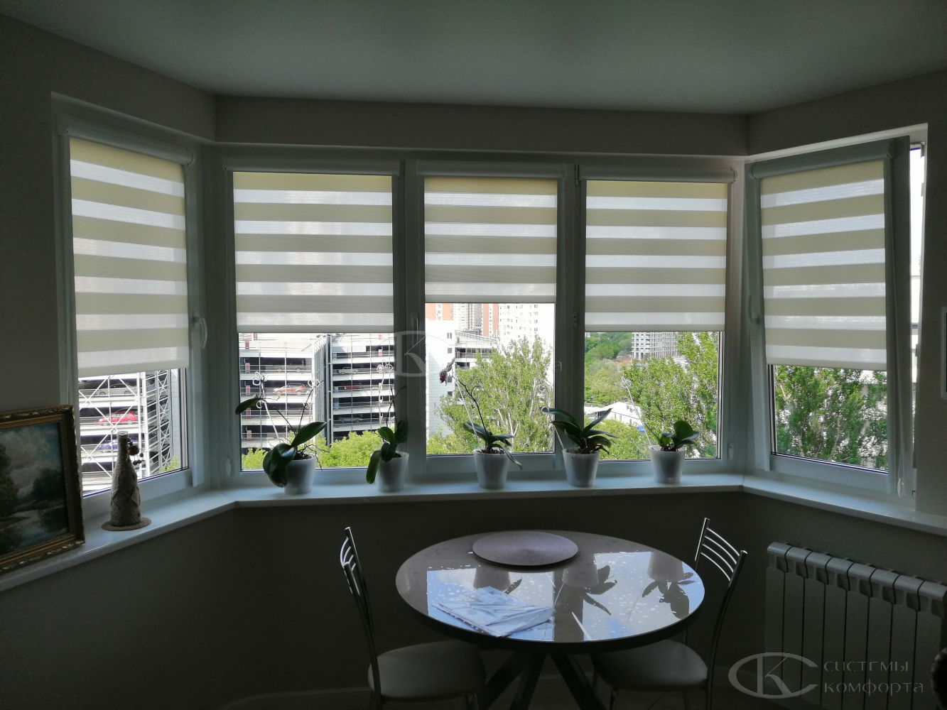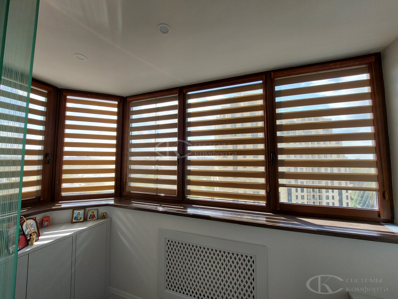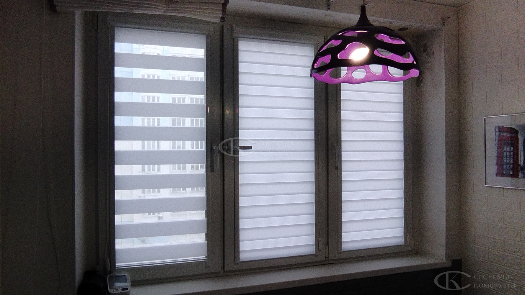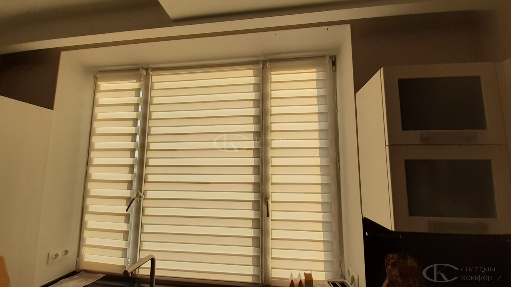 Классические рулонные шторы изготавливаются из огромного разнообразия тканей – от воздушных и полупрозрачных до абсолютно плотных, не пропускающих свет («блэкаут»), что позволяет подобрать решение для любой задачи и комнаты. Для тех, кто ценит гибкий сценарий освещения, идеальным выбором станут шторы «День-ночь», также известные как «Зебра». Их уникальная конструкция состоит из чередующихся прозрачных и плотных полос; регулируя их положение относительно друг друга, вы плавно управляете потоком света, создавая любой уровень затемнения между «светло» и «темно». Это оптимальный вариант для спальни и детской, где важно и мягкое утреннее пробуждение, и полная темнота для глубокого сна.