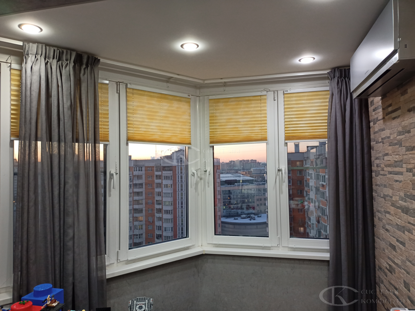 - Гостиная/кабинет: эстетика, стиль, управление светом для комфортной работы и отдыха. Деревянные горизонтальные, вертикальные тканевые, римские шторы, плиссе.