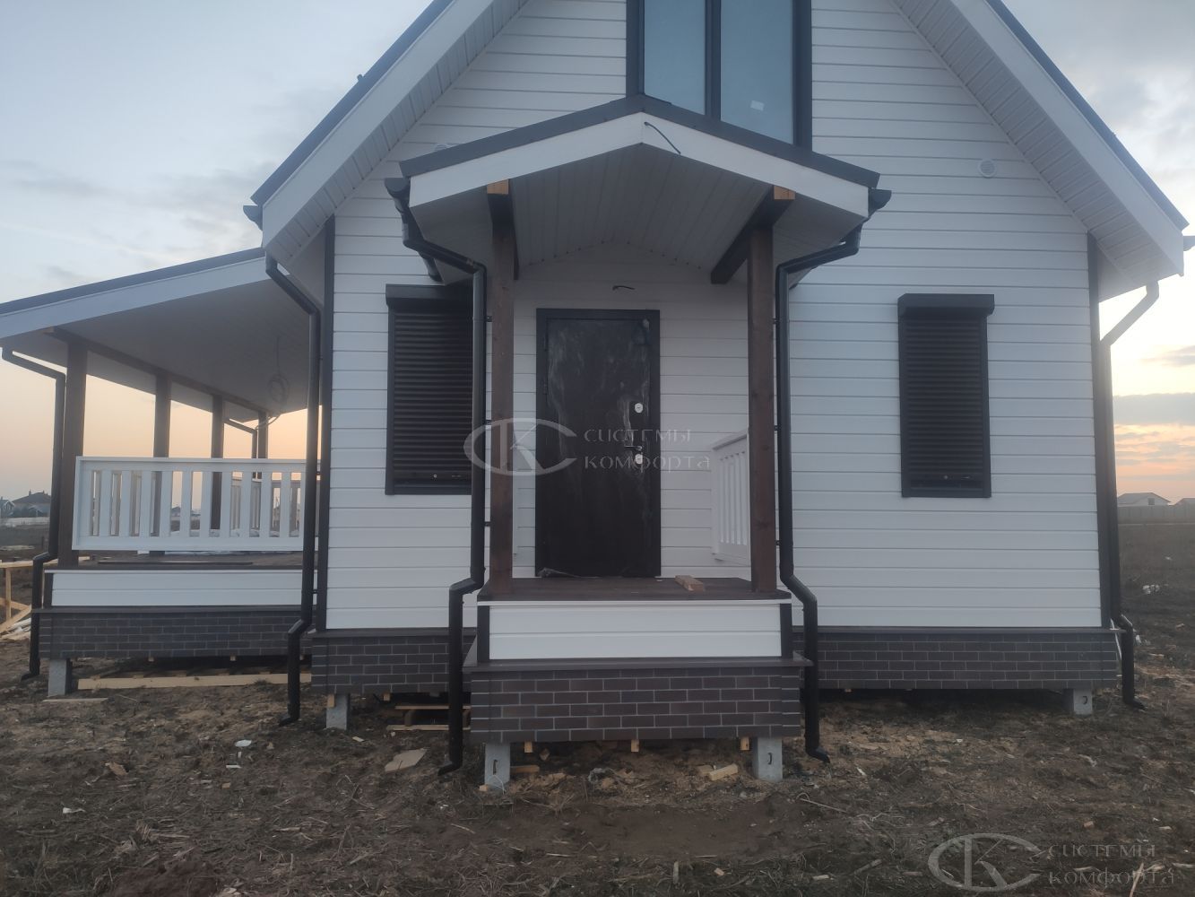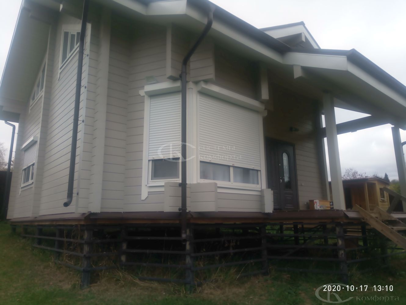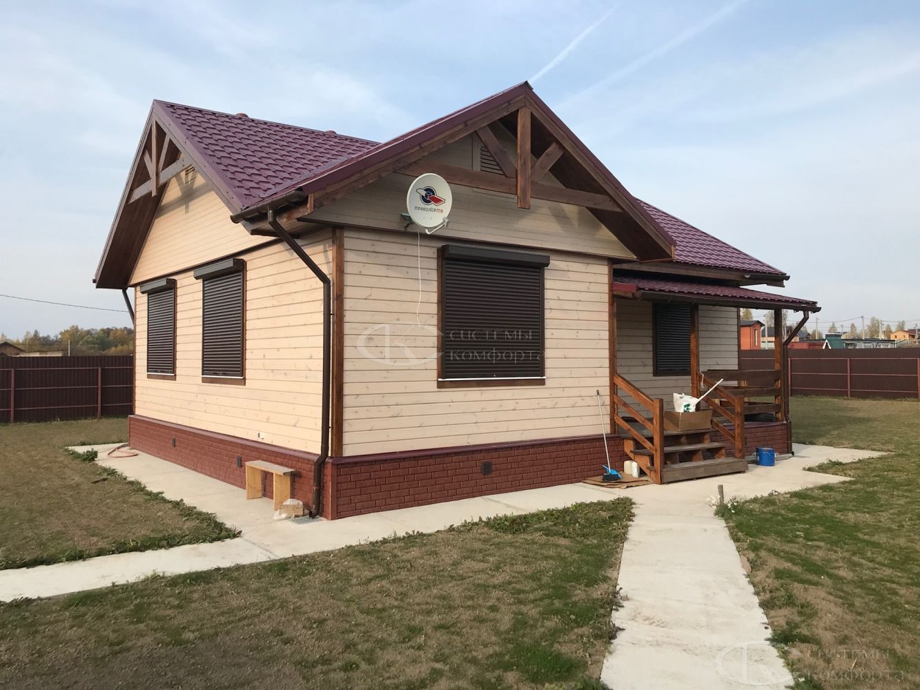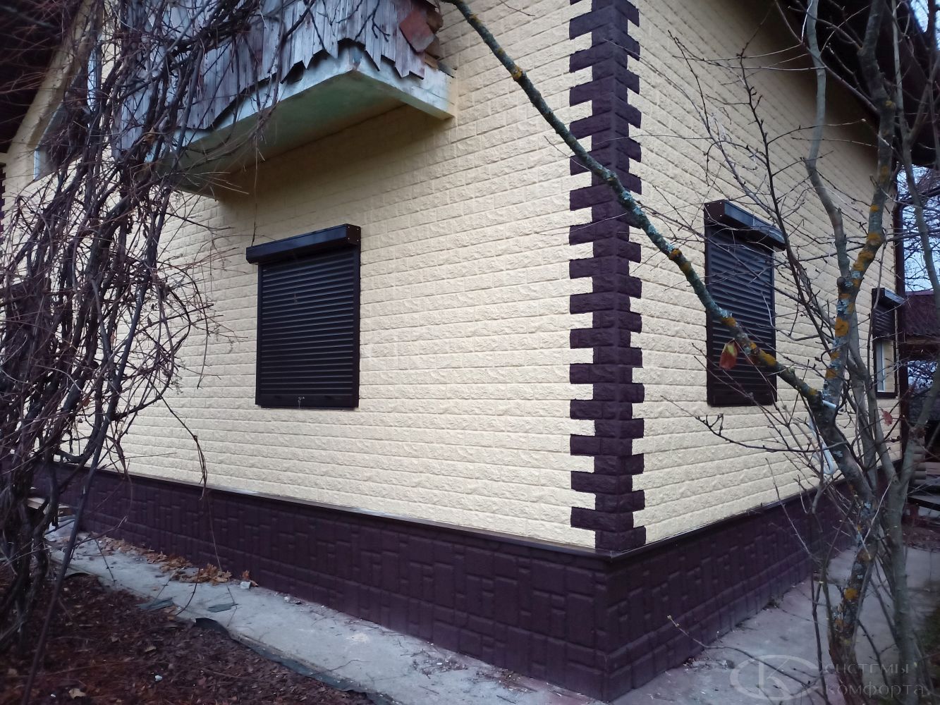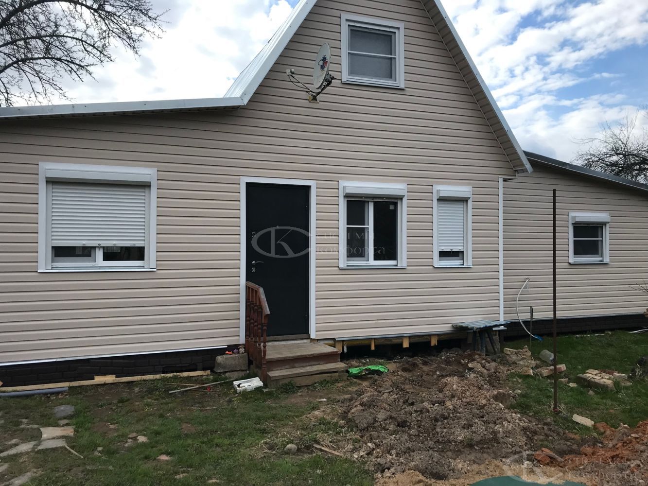 Короб рольставен монтируется на фасад здания выше проема, направляющие — по бокам окна. Такой способ не влияет на объем света, попадающего в помещение, а сами роллеты в открытом положении не видны из дома. Недостаток решения: конструкция выступает относительно наружной стены и может внести дисгармонию в архитектурный облик здания.