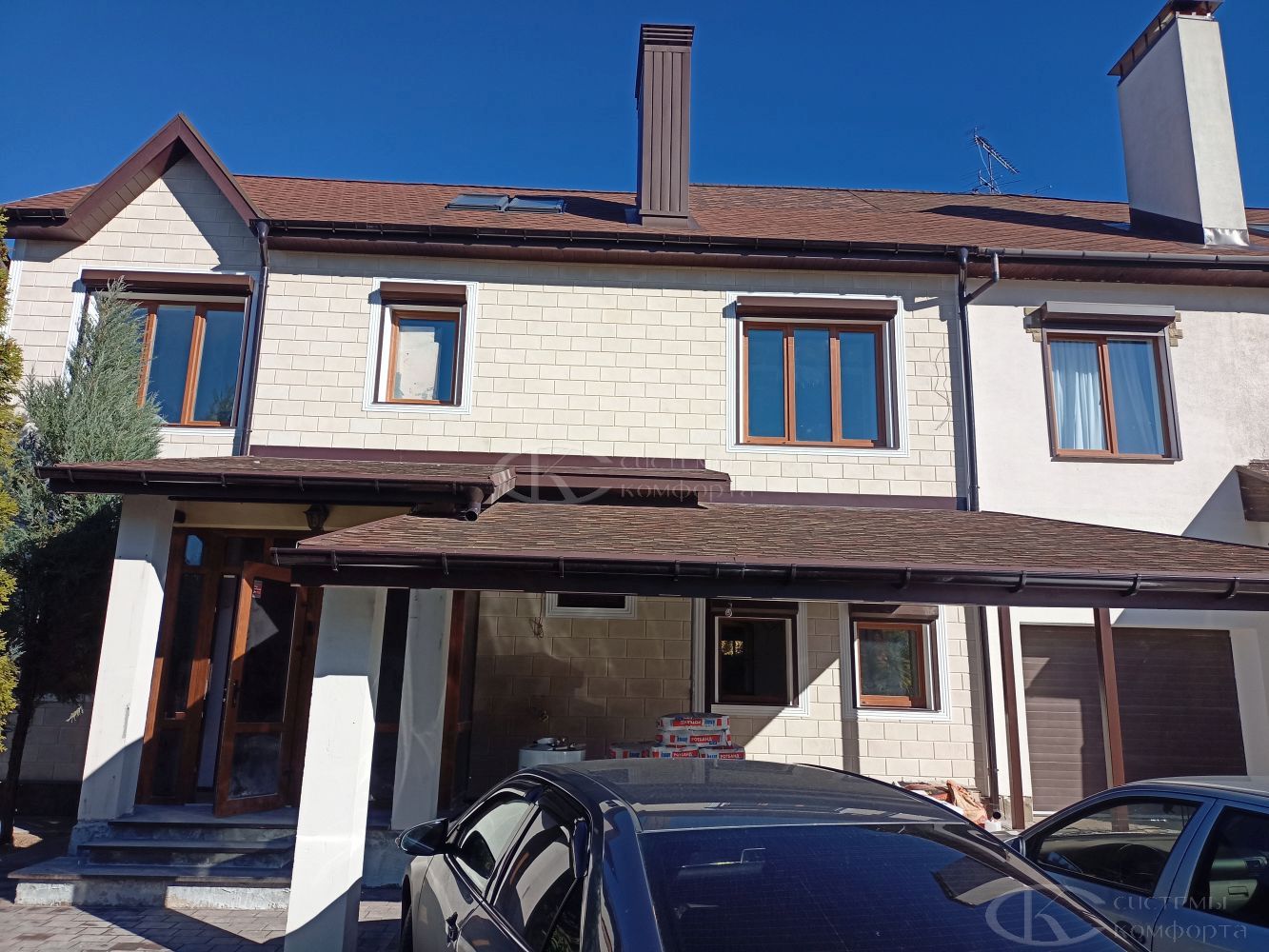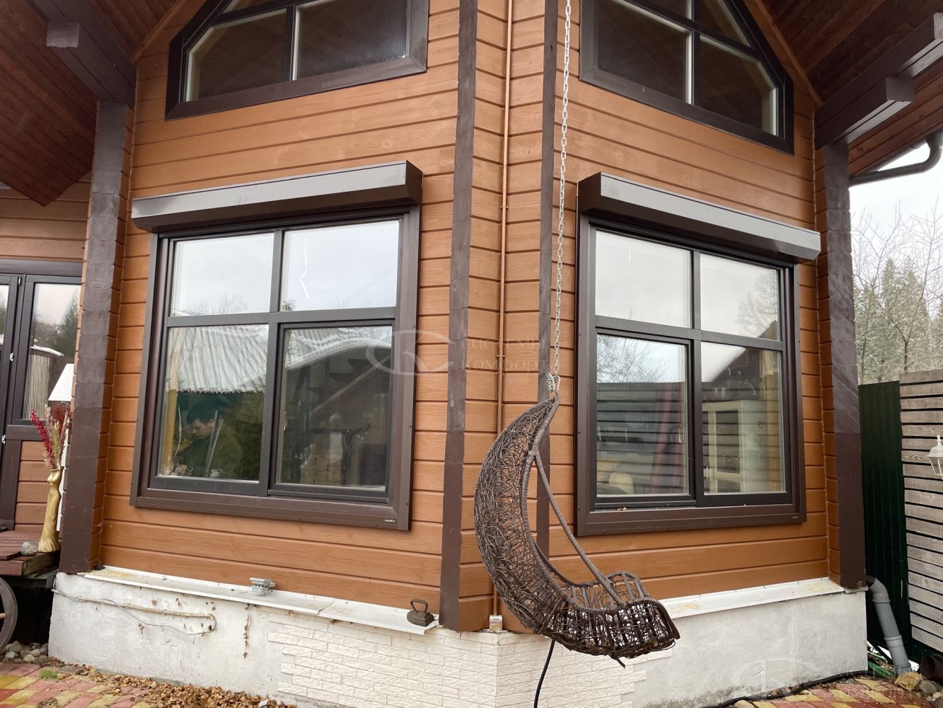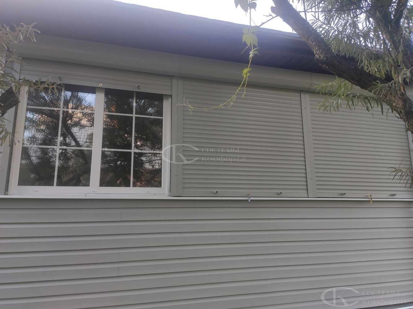 Этот вариант скрытого монтажа рольставен подходит для эксплуатируемых домов. Короб размещается в оконном портале, а специальная конструкция позволяет замаскировать его. Плюсы: не нужно подготавливать нишу, при этом архитектура здания не нарушается массивными кожухами. Минус: закрывается часть окна, что делает помещения чуть темнее.