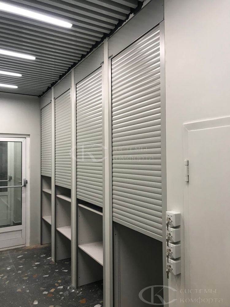Собрав полки из досок, фанеры или других материалов, вы можете заказать у нас специальные рольставни и сделать помещение максимально удобным.