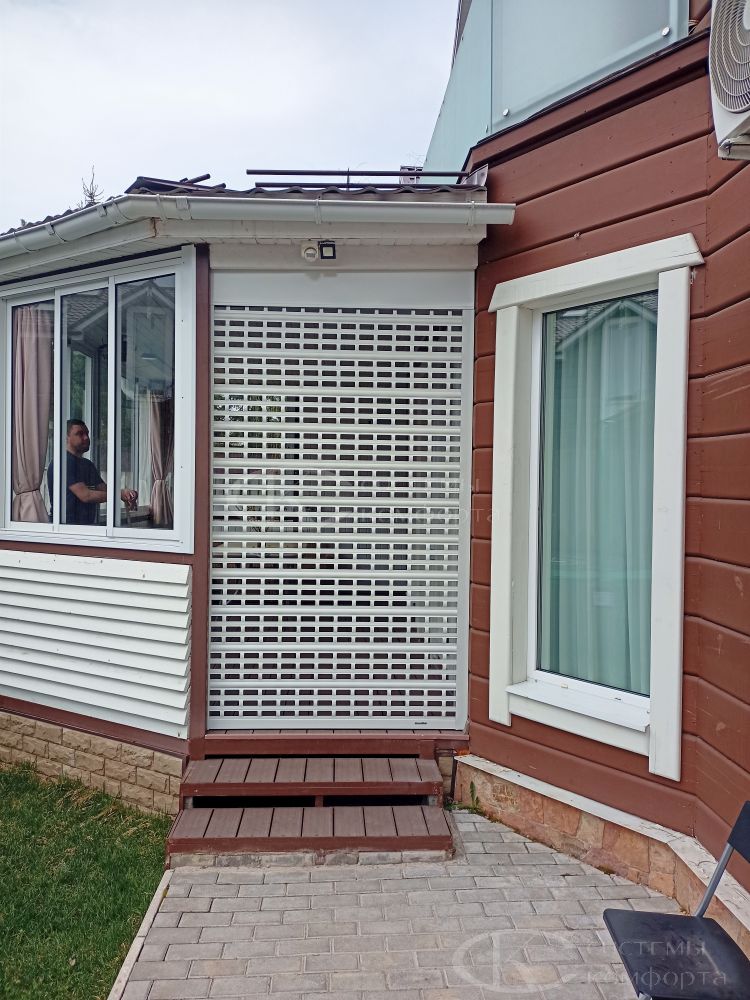 При необходимости усилить конструкцию и для препятствия попадания мусора или посторонних предметов внутрь решетчатые рольставни иногда сочетают с одностенным и усиливающим профилем в нижней части полотна.
