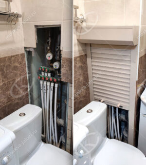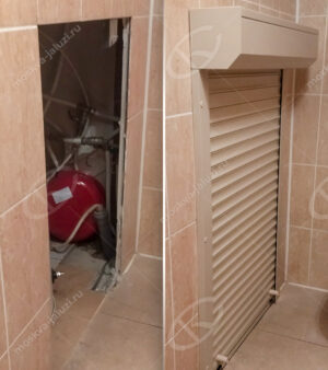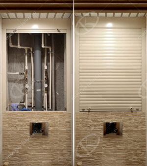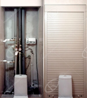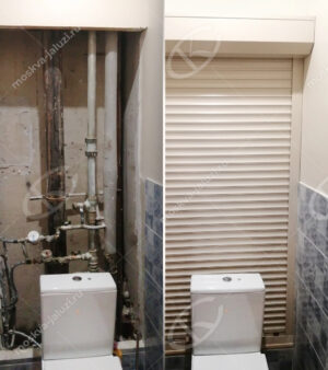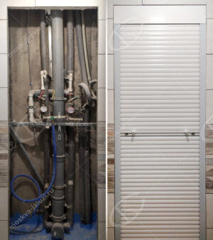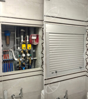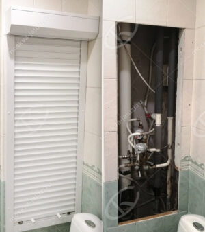 Сантехнические рольставни упрощают доступ к счетчикам воды, позволяют без поломки стены и кафеля заменить трубы, закрывают место (шкафчик) для хранения хозяйственных принадлежностей.