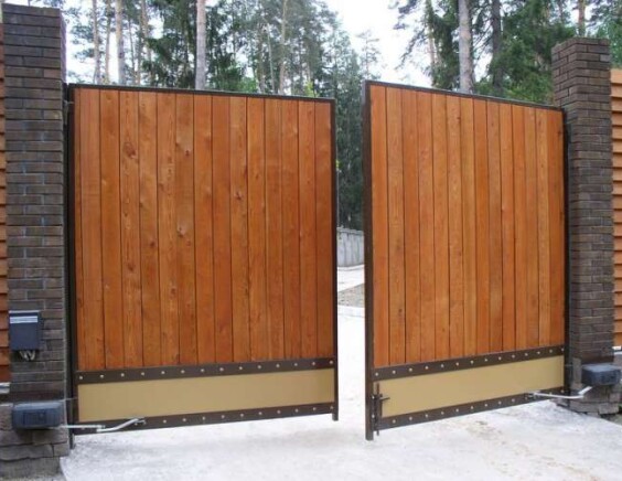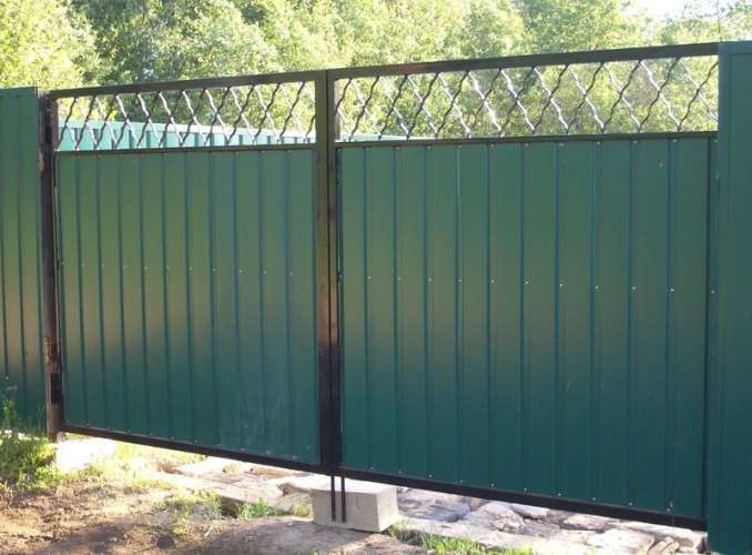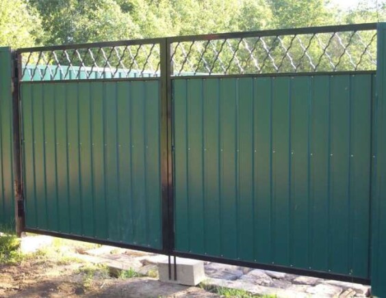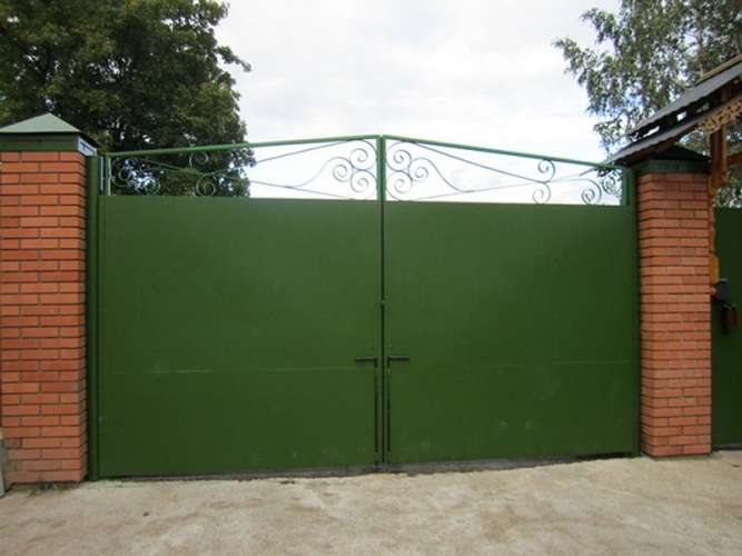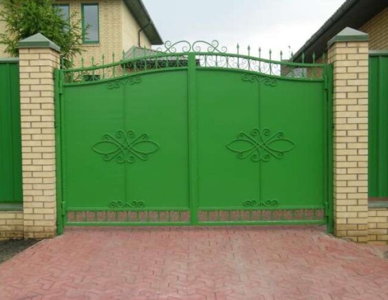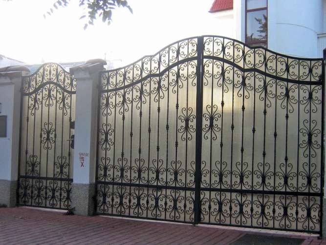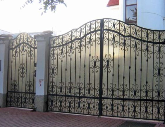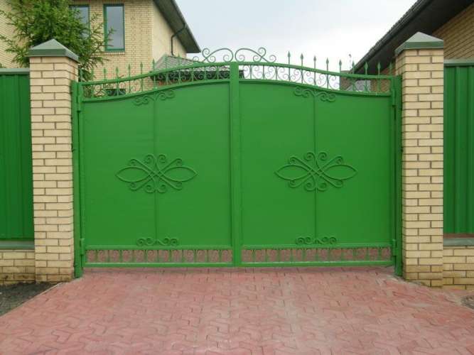 Также можно выбрать более сложные варианты. Ворота из профлиста или штакетника могут быть дополнены художественной ковкой. Кованые декоративные элементы отлично смотрятся со стороны; кроме того, металлическая решетка повышает прочность конструкции. Однако она значительно увеличивает стоимость, а также добавляет вес конструкции.