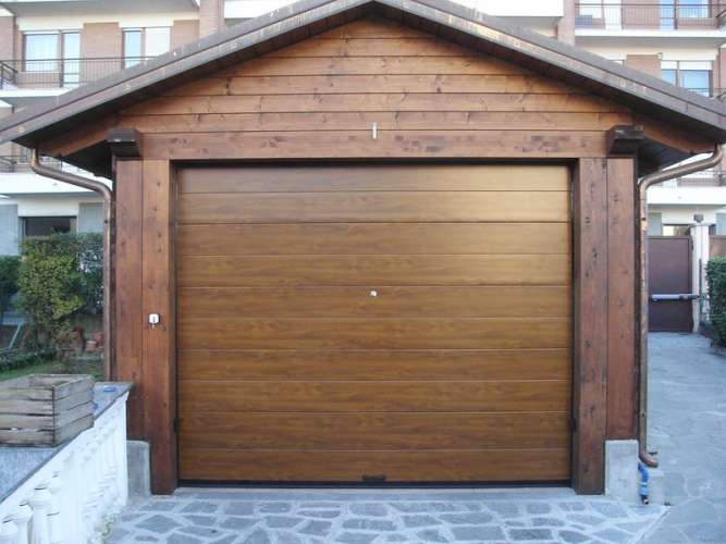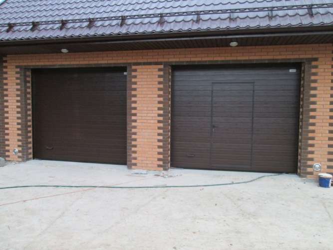 Полотно ворот при необходимости можно дополнить небольшой калиткой. Это позволит заходить в гараж без полного открывания створки.