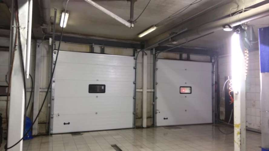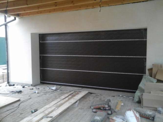 Принцип действия отличается от рольворот – полотно поднимается по направляющим под крышу. Они подходят для теплых помещений с притолокой от 25 см. Такие ворота имеют более высокую цену, но и более надежную и долговечную конструкцию, выдерживают незначительные ошибки при ледяном дожде зимой.