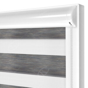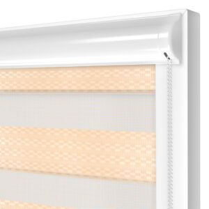 Кассетные рулонные шторы День-Ночь Uni-2 не просто защищают помещение от света и уличных взглядов, но еще и украшают помещение. Конструктивная особенность в том, что изделие состоит из двух слоев ткани. Прозрачные и непрозрачные участки материала чередуются словно рисунок на теле зебры. Благодаря тому, что ткань двигается в «П»-образных направляющих, она не выпадает, если окно находится в режиме проветривания.