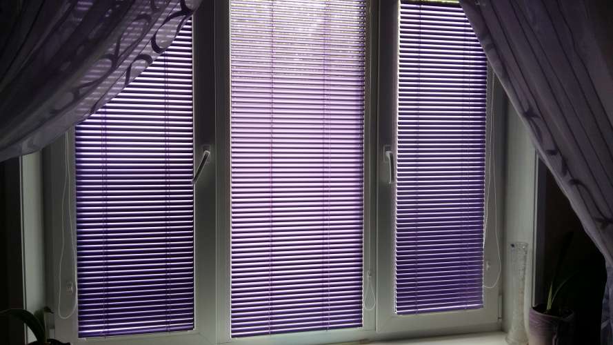 Чистка ламелей проводится в закрытом состоянии обычной влажной губкой. В случае сильного загрязнения воспользуйтесь мыльным раствором. При необходимости изделия можно снять с окна.