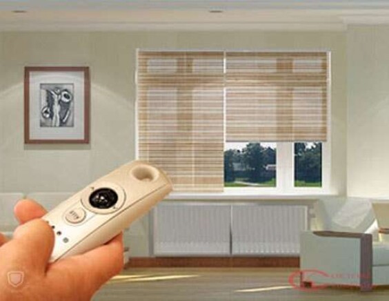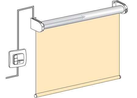 На свободновисящие рулонные жалюзи устанавливают автоматику с напряжением 220 V. Управление выполняется с клавиши или пульта управления (ДУ). Монтаж продумывается на этапе ремонта, так как требуется проведение электропитания. После завершения отделки электропроводка прокладывается наружно.