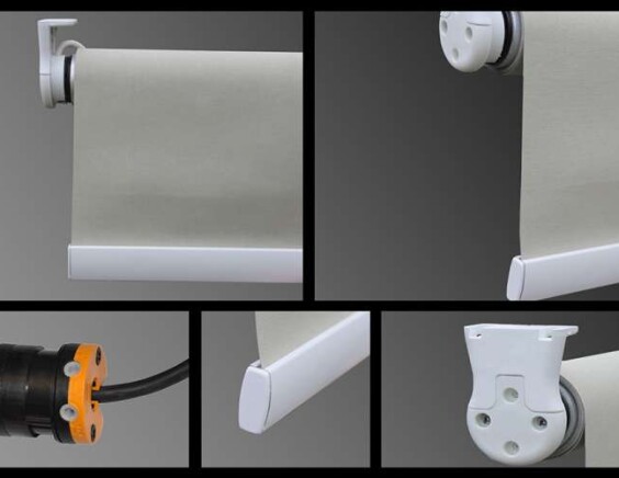 Свободновисящие рулонные жалюзи с электроприводом – классическая конфигурация, где полотно накручивается на вал. На такие модели устанавливают автоматику с напряжением 220 V. Управление выполняется с клавиши или пульта управления (ДУ). Монтаж таких штор следует планировать заранее, на этапе ремонта, поскольку необходима наружная подводка электропитания.