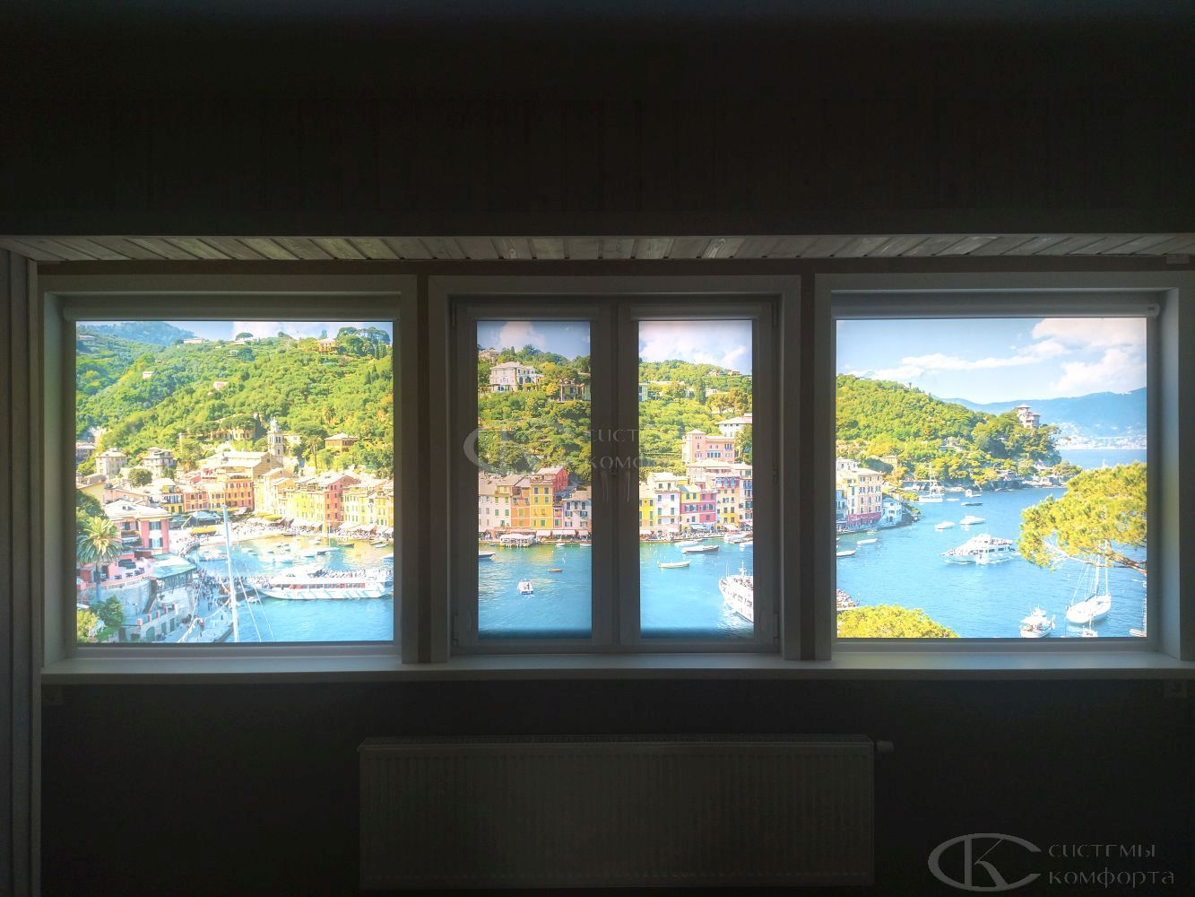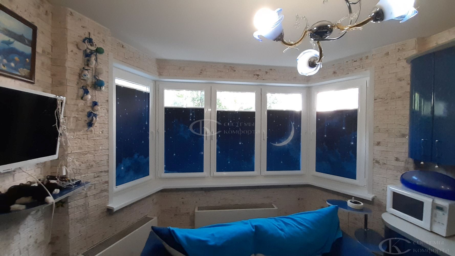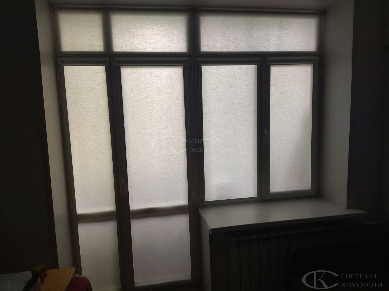 Конструкция устанавливается на окна любых размеров, даже на панорамные и витринные.