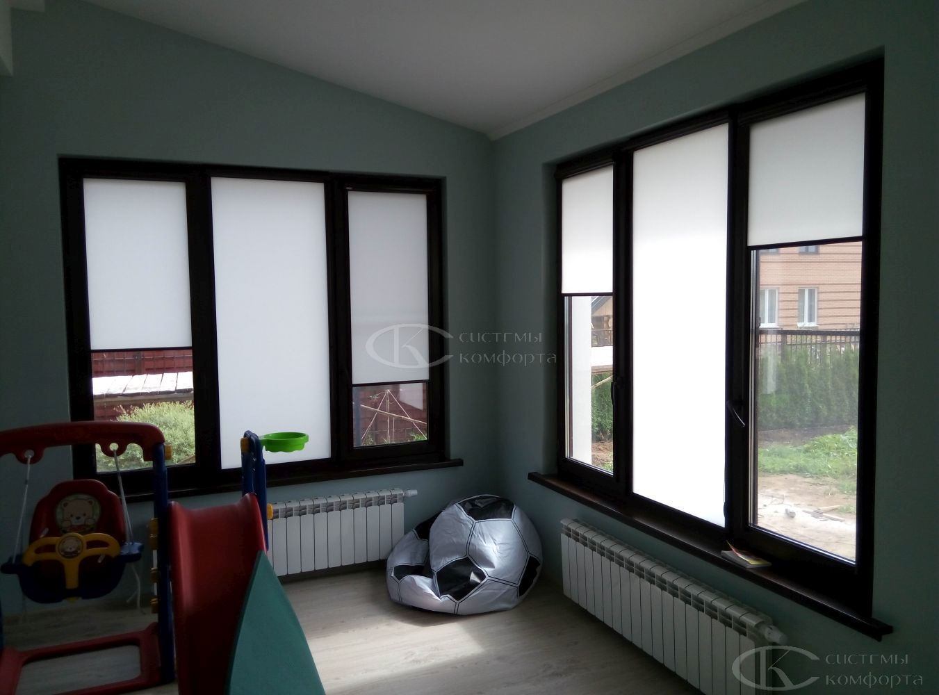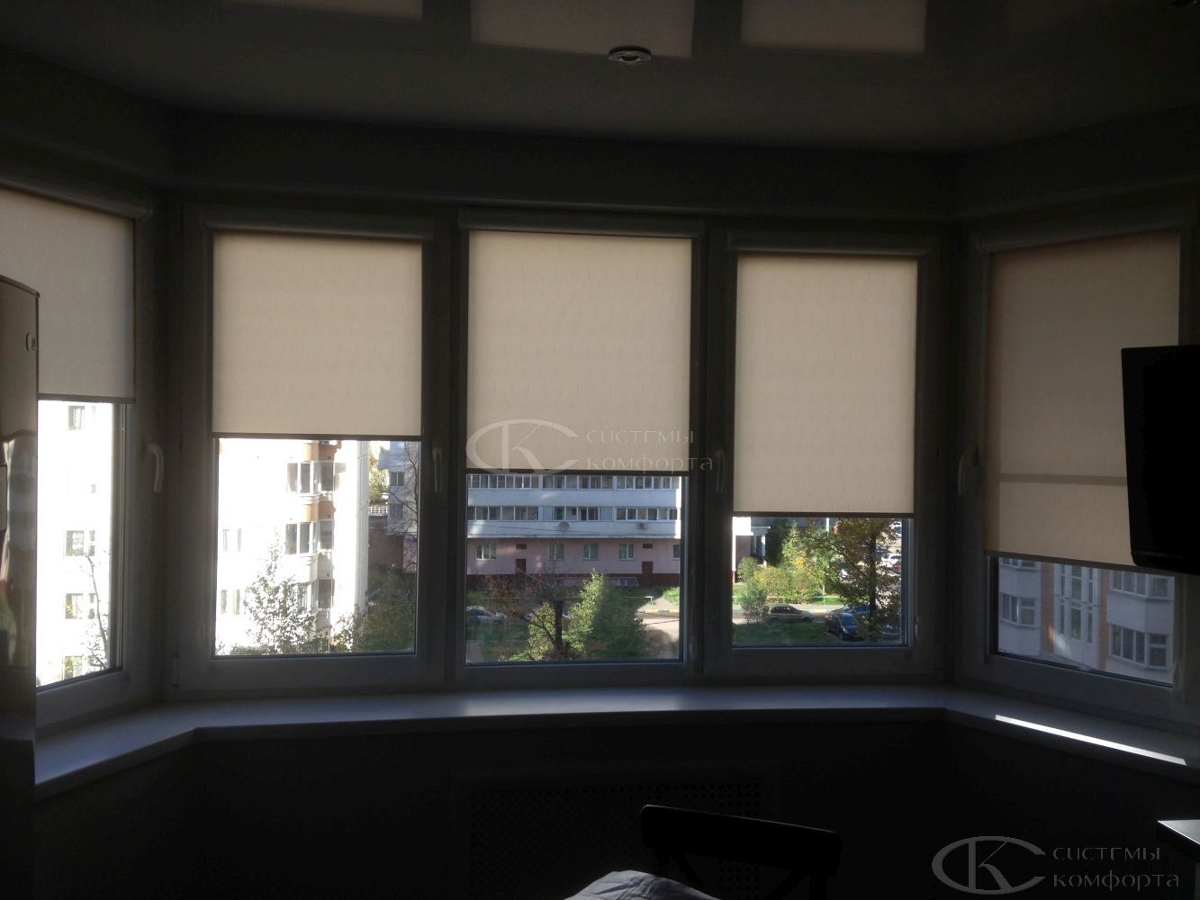 Кассетные рулонные шторы фиксируются на каждую створку оконной конструкции. Среди плюсов таких изделий можно отметить плотное прилегание к стеклу, что стало возможным за счет короба, направляющих и других элементов. Благодаря единой цветовой гамме создается единый образ, который не выбивается из интерьера помещения. Они отлично показывают себя при проветривании, откидывании, открытии створок.