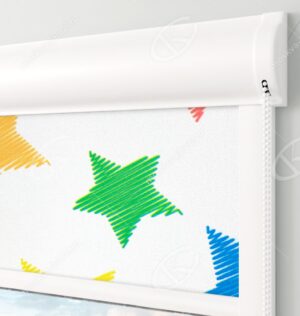 Кассетные рулонные шторы Уни-1 – Детские звездочки подходят для установки на пластиковые окна.