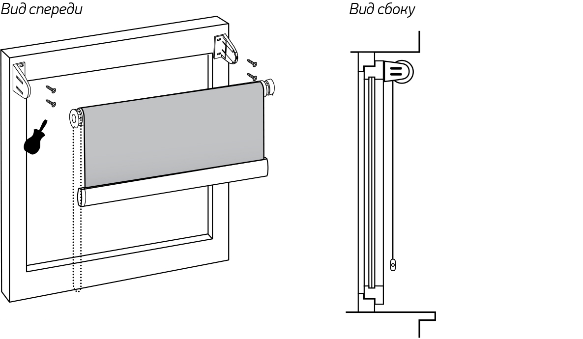 Рулонная штора прикладывается к месту фиксации. Там, где будут расположены кронштейны, нужно поставить отметки карандашом. Установка проводится следующим образом:
