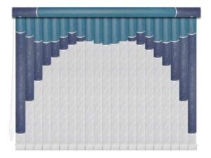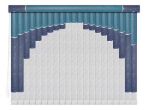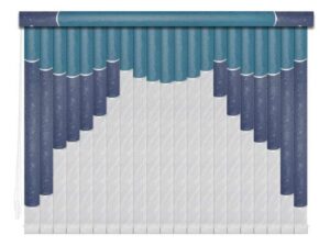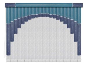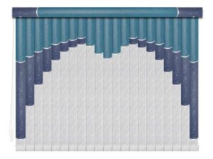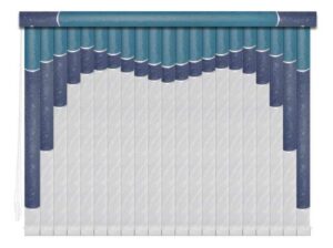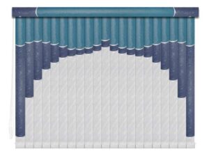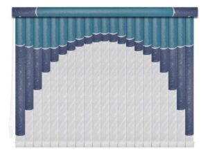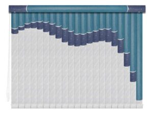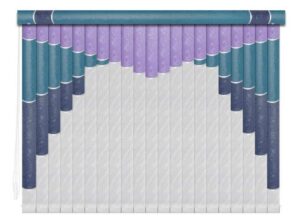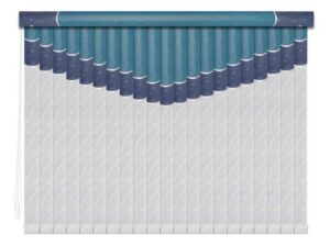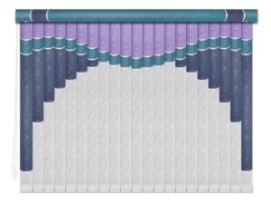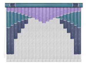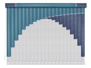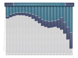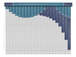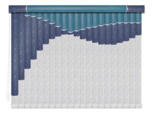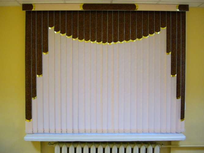 Если в грувер вставить несколько ламелей из разных материалов, получатся мультифактурные вертикальные жалюзи. Обычно внизу полотна используют тонкую ткань с пропиткой для имитации тюля, а сверху — пластик. Между собой ламели соединяют тонкими лентами, а поверх соединения крепят декоративные вставки золотистого или серебристого цвета. Ламели крепятся к декоративному карнизу. Монтировать систему можно на потолок или стену. Управление ламелями (их поворот, открывание и закрывание) происходит при помощи специальных шнуров.