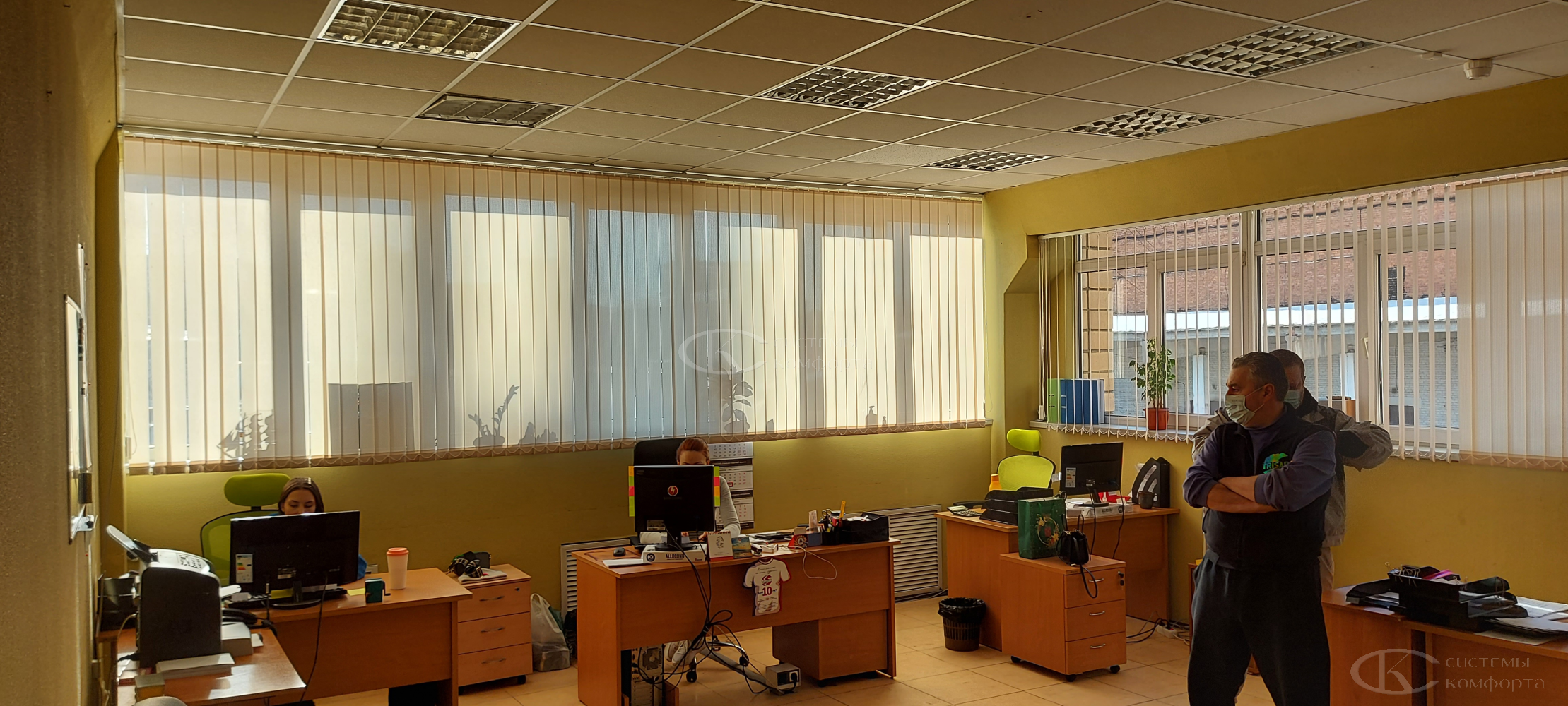 Вертикальные тканевые жалюзи — недорогой вариант солнцезащитной системы для дома или офиса. Они хорошо защищают помещение от солнца. Недостатком такой системы считаются быстрая поломка при неаккуратном обращении и загрязнение ткани при проветривании помещения. Но если очистить от грязи и пыли их не получается, то задача решается путем недорогой замены ламелей. Из преимуществ можно отметить огромный выбор цветов и фактуры, а также возможность нанесения фотопечати: картинки или логотипа. Бесплатный замерщик поможет выбрать модель и определиться с решением. Персональный менеджер поможет сделать предварительный расчет.